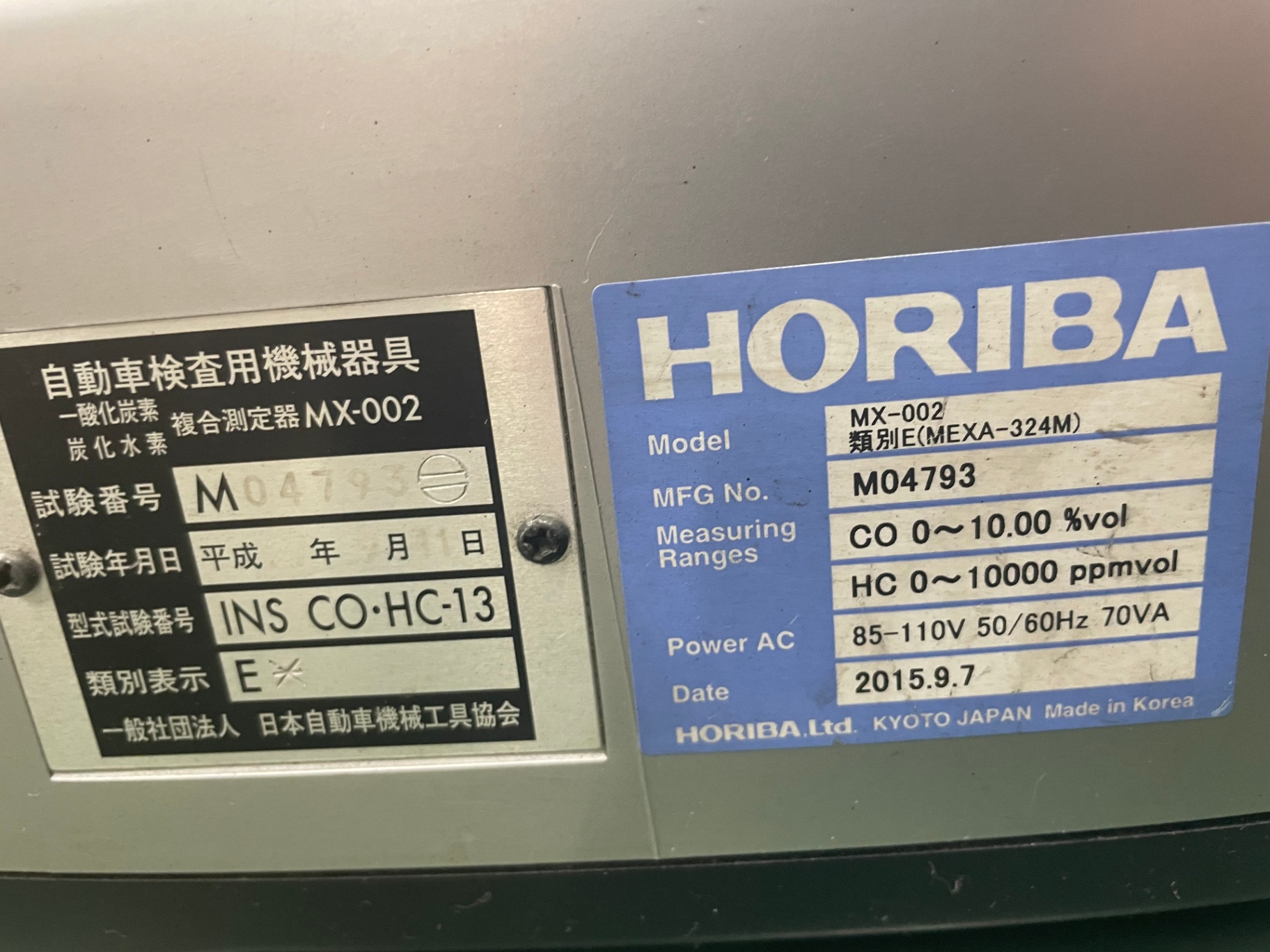 ●型式:MEXA-324M 型式認定番号:INS CO・HC-13