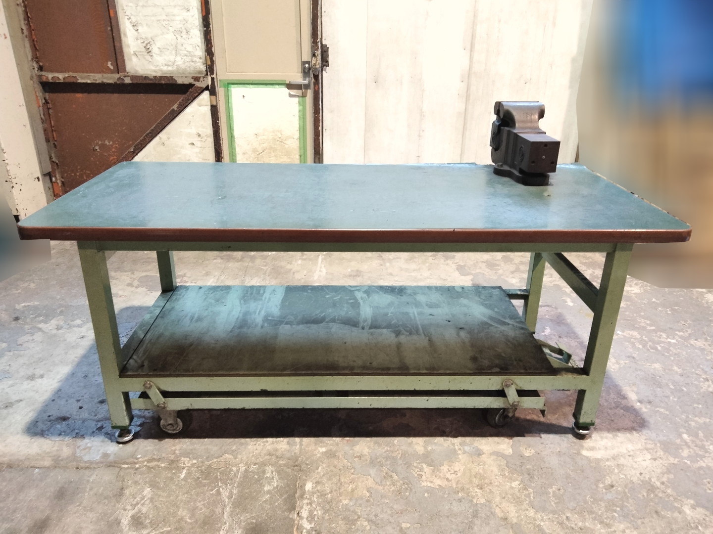 中古 キャスター付き重量作業台 バイス付き 9823